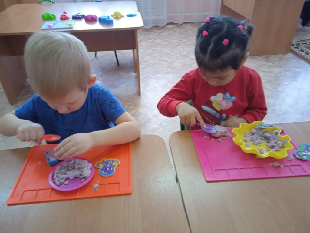 Кинетикалық құммен ойнау - өте қызықты және қызықты әрекет. Ортаңғы «Көбелектер» тобының балалары «Су асты әлемі» пейзажын жасады.