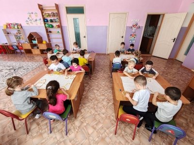 Дәстүрлі емес сурет салу техникасы бойынша «Тасбақа» топтық жұмыс өткізілді. Ойын әрекетінің мақсаты: балалар сурет салу технологиясы туралы білімдерін дамыту. Экспрессивті бейнені жасау үшін сызбаға мәліметтерді қалыптастыра және оған қоса білу. Еңбексүйгіштікке, ұқыптылыққа, алғырлыққа тәрбиелеу.