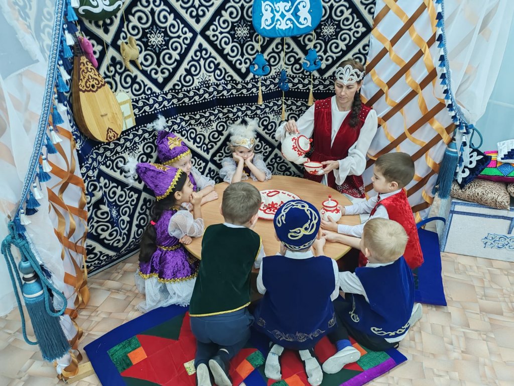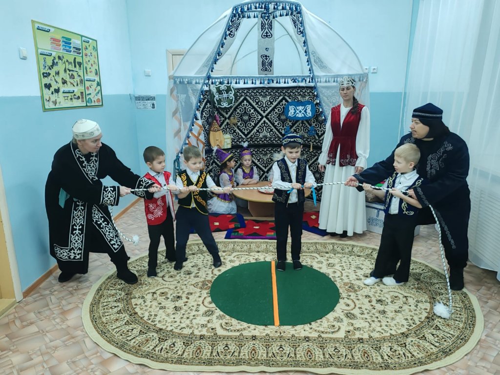 16 қаңтарда "Ер-Төстік" бөбекжайында Тілге бойлау" пилоттық жобасын іске асыру аясында "Ұлттық ойын – ұлт қазынасы"атты балаларға арналған ұлттық қимылды ойынына мектепалды “Инеліктер” және "Аралар" ересектер тобының 7 тәрбиеленушісі мен 4 ата-аналары Алдар көсе, Бай,Ертөстік кейіпкерлері ретінде келіп балалармен бірге қазақтың ұлттық ойындары "Асық ату", ,"Арқан тарту" ойындарын ойнап жарысты. Ойындарды дене шынықтыру пәнінің нұсқаушысы Наталья Александровна Трегубова мен музыка жетекшісі Асылтас Қайыркенқызы Көшбай жүргізді.