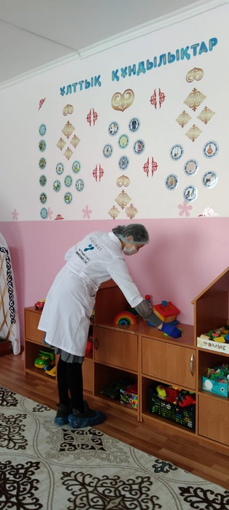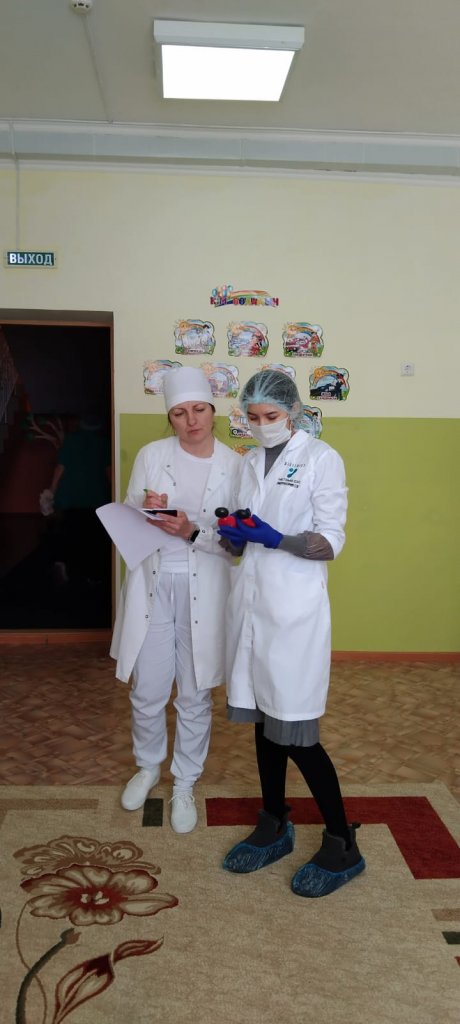 «Ер-Төстік» бөбекжайында санитарлық-эпидемиологиялық талаптардың сақталуын өндірістік бақылау бағдарламасына сәйкес «Гигиенист Vll» ЖШС зертханасымен зертханалық зерттеуге сынамалар мен жағындылар алынды.
