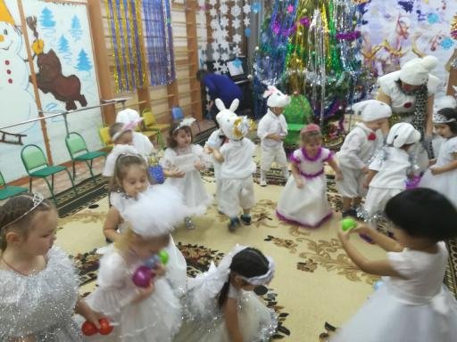 Біздің балалар жаңа жылдың ғажабына танты болды. Қызықты аққала мен қоян