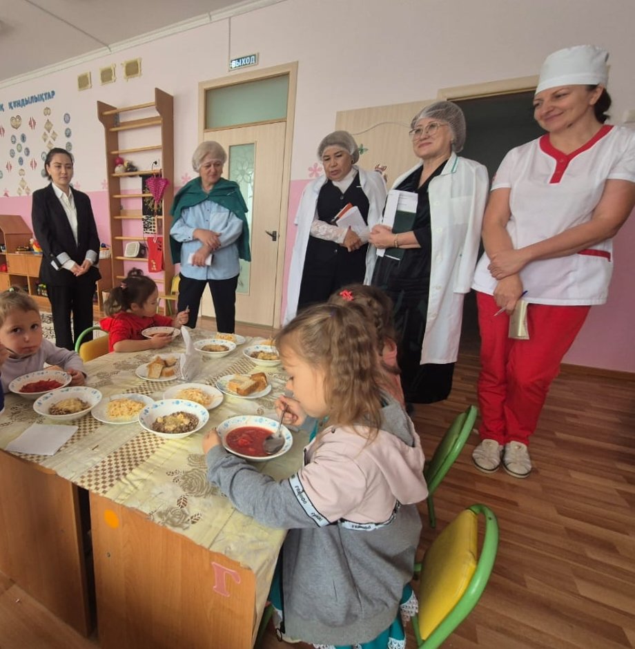 Тамақтануды сапалы және жүйелі бақылауды жүзеге асыру мақсатында "Ер - Төстік" бөбекжайында тәрбиеленушілердің ыстық тамақтануын ұйымдастыруға мобильді топ бақылау жүргізілді. Оның барысында: