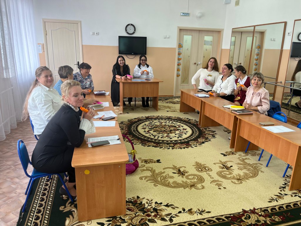 Бүгін бөбекжайда Өсу нүктесі тәрбиешілерінің жиыны өтті. Олар өзекті мәселелерді талқылады: «Кішкентай балалардың ойын және қарым-қатынас арқылы сөйлеуін дамыту», сәбилер тобының тәрбиешісі О.И. Наговицына; Педагог психолог Л.Ф.Келлердің «Балаларды балабақша жағдайына бейімдеу»; және «Балабақшадағы музыка сабағының мақсаты», музыка жетекшісі А.К.