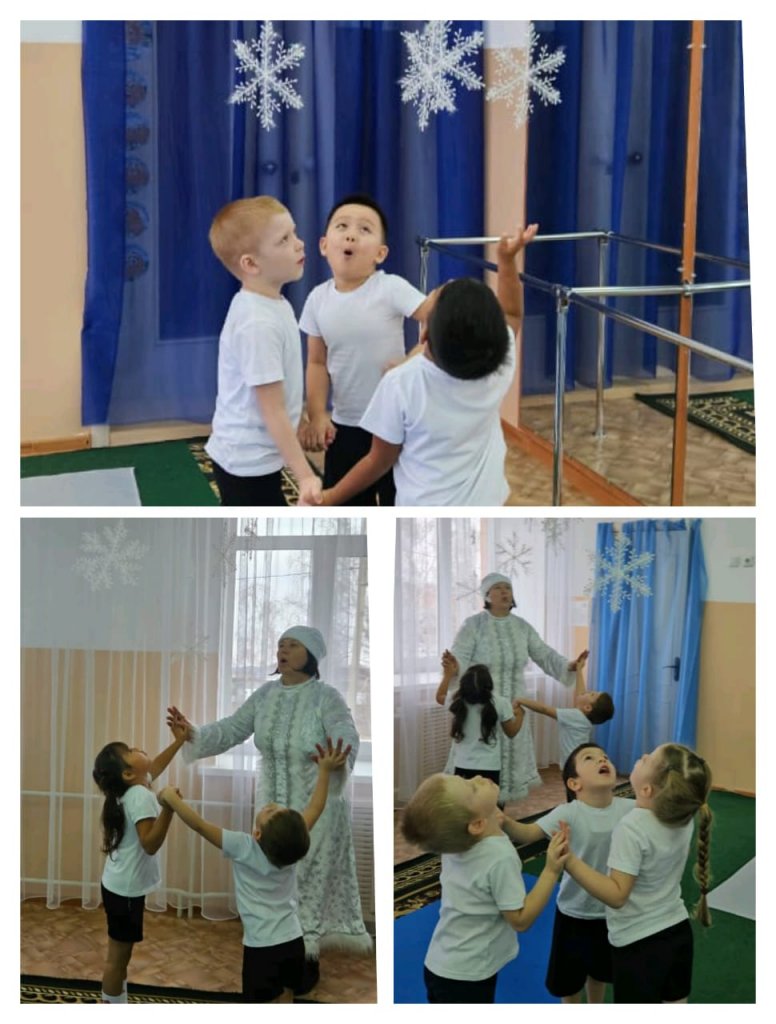 Іс-әрекет “Қыс бізге қонаққа келді” ертегі түрінде өтті. Балалар жамылғыны қар бүршіктерімен безендіріп, үстіңгі бетті толтыру бойынша тәжірибе өткізді, тыныс алу гимнастикасын орындады. Сабақ қозғалыс дағдыларын дамытуға және дене белсенділігіне қызығушылықты арттыруға ықпал етті.