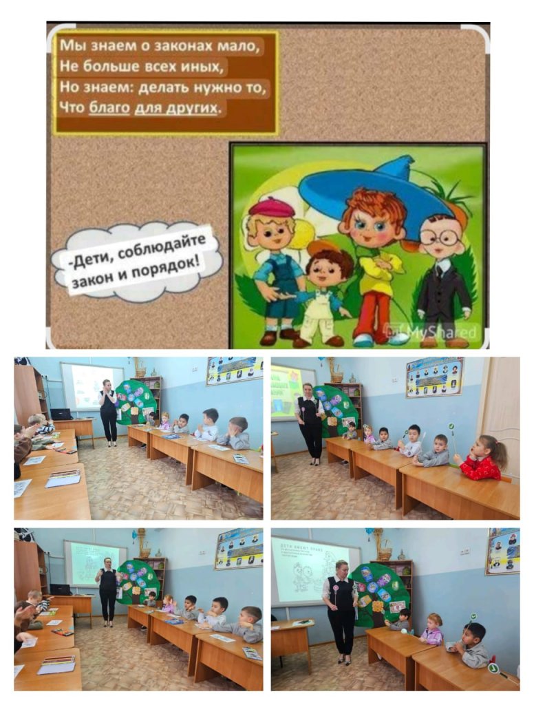Мектепке дейінгі мекеме балалардың құқық тәртібі туралы түсініктерін дамыту мақсатында жұмыс істейді. Әңгімелесу және ойын жағдайлары арқылы балалар ережелерді сақтауға, шыншылдыққа, жауапкершілікке үйренеді.«Адал Азамат» ұғымы басқаларға құрмет пен әділеттілік сезімін тәрбиелеуге көмектеседі. Мұндай іс-шаралар мектеп жасына дейінгі балалардың заңға бағыну тәртібі мен қарым-қатынас мәдениетіне ықпал етеді.