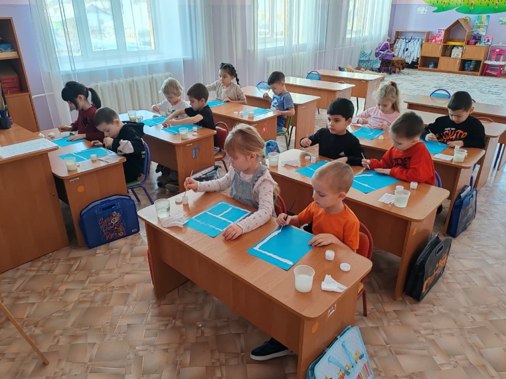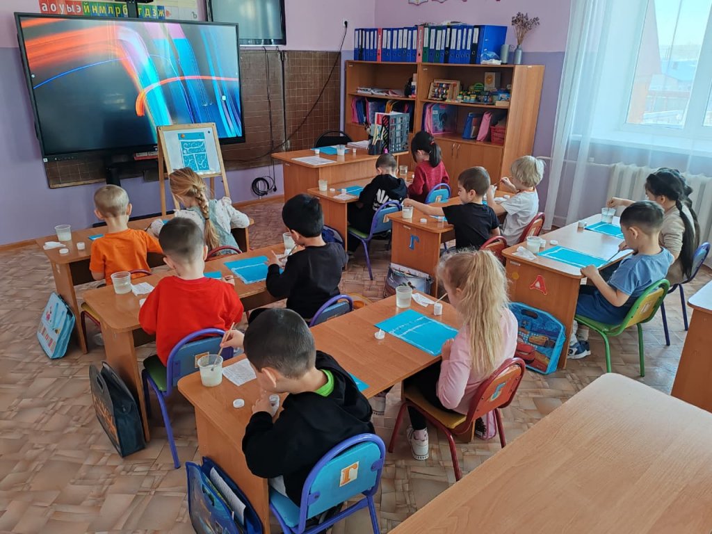 Мектепалды даярлық тобының балалары гуаш бояуы арқылы терезелерге аяз өрнектерін салып, қысқы ертегі атмосферасын жасап, шығармашылық қиялдарын дамытты. Бұл әрекет балаларға көркемдік техникамен танысуға көмектеседі және қысқы табиғатты эстетикалық бағалауды дамытады.