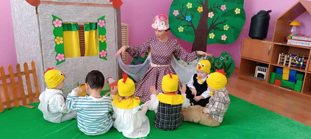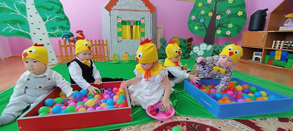 Ерте жастағы балалар тобы «Тауыққа қонаққа бару» тақырыбында ашық ұйымдасқан ойын іс-әрекетін өткізді. Балалар ойын әрекетіне ынтамен қатысып, қарапайым тапсырмаларды орындады, тауық пен оның балапандарының қимылдарына қуана еліктеді.