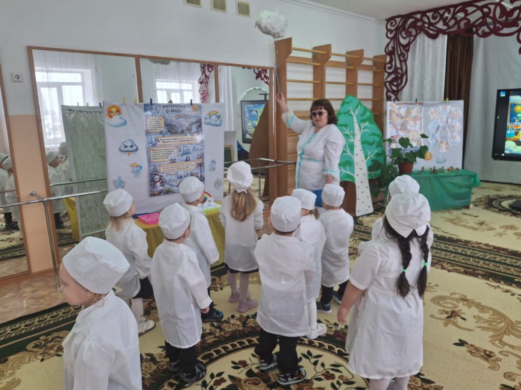 Ортаңғы топ ұйымдастырылған оқу іс-әрекетін өткізді. Мақсаты: судың қасиеттерімен таныстыру, жансыз заттар туралы білімдерін дамыту, суды үнемдеу керектігіне тоқталу. Кімге су керек екенін есте түсіру. Бұл әрекет қызығушылықты, танымдық белсенділікті, ұсақ моториканы дамытады және маңызды табиғи ресурс ретінде суға қамқорлықпен қарауға тәрбиелейді.
