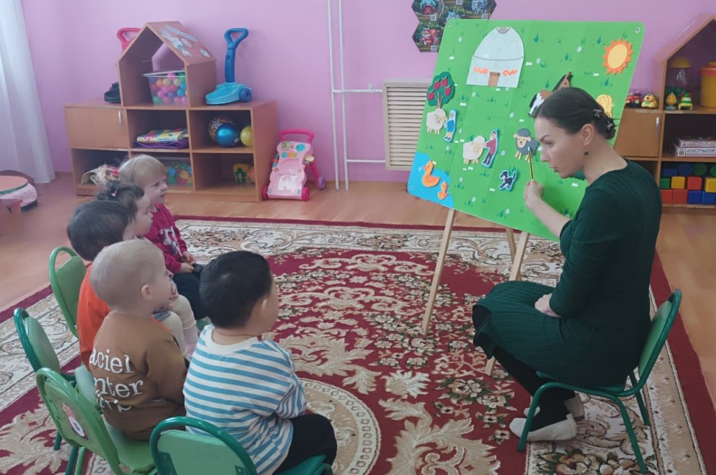 Ерте жастағы топтағы пәндік-даму ортасын ұйымдастыру ойын, зерттеу және өзіндік іс-әрекет арқылы балалардың жан-жақты дамуына жағдай жасауға бағытталған. Топта сөйлеу, ойлау, сенсорлық дағдыларды дамытуға және қоршаған әлем туралы идеяларды қалыптастыруға ықпал ететін рөлдік және дидактикалық ойындарға арналған тақырыптық панель бар.