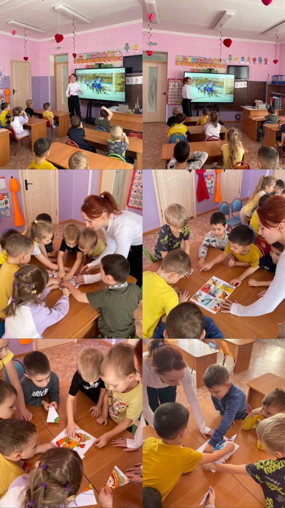 Балалар спортшылардың шаңғы тепкенін бақылайды, қай жерде жарыстар өтетінің, қандай құрал-жабдықтарды пайдаланатының, спорттың маңыздылығын талқылайды. Келесі кезекте балалар ойын және практикалық әрекеттерге көшеді. Шағын топтарда олар тапсырмаларды орындайды: тақырыптық жұмбақтарды құрастыру, қысқы спорт түрлерін бейнелейтін карталарды қарау және спортшылардың әрекеттерін талқылау.