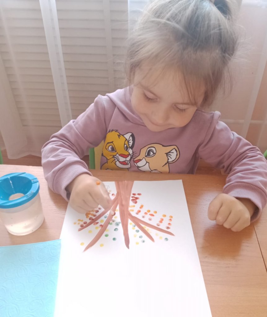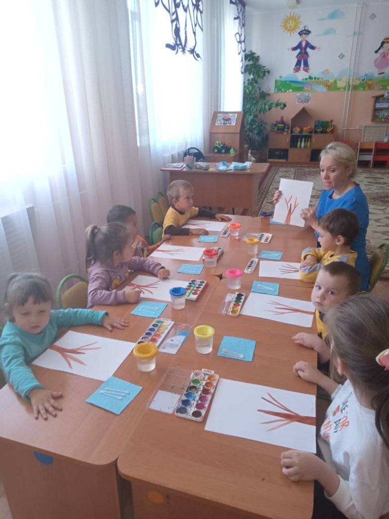 Санатор тобының балаларымен саусақ моторикасын дамыту, шығармашылығы мен зейінін арттыру мақсатында, мақта таяқшаларымен сурет салу әдісін қолдану арқылы дәстүрлі емес сурет салу сабағы өткізілді.