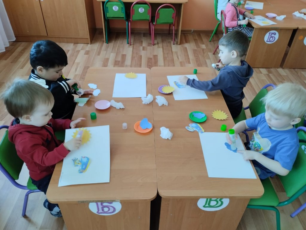 Кіші топта «Қайық» жапсыру іс-әрекеті болды, оның мақсаты балаларды әр түрлі пішіндегі, өлшемдегі дайын бөлшектерді қағаз парағына алдын ала (белгілі бір ретпен) салуға және оларды жабыстыруға үйрету болды;