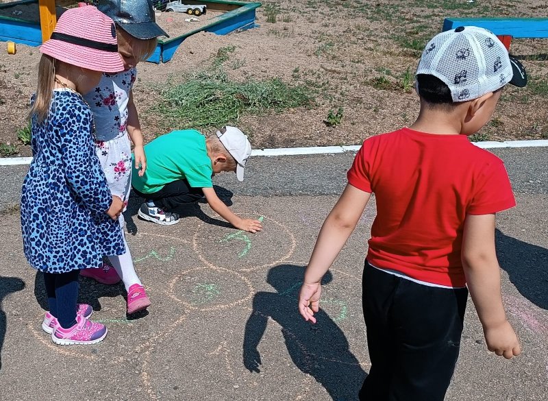 Асфальтта сурет салу-бұл серуендеу кезінде қызықты іс-шара ғана емес, сонымен қатар қоршаған әлемді білу, шығармашылықтың қуанышы. Дайындық тобының балалары үлкен қуанышпен қатысып, түрлі сюжеттерді суреттеді.