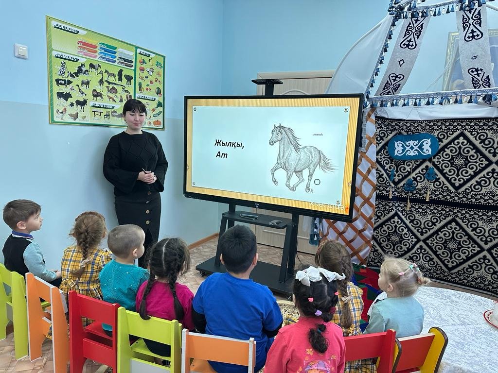 Ересектер тобының балаларымен "Жануарлар әлемі" тақырыбында  ойын әрекеті өтті. Ойын барысында балалар жануарлардың түрлері мен қазақша атауларын қайталады.