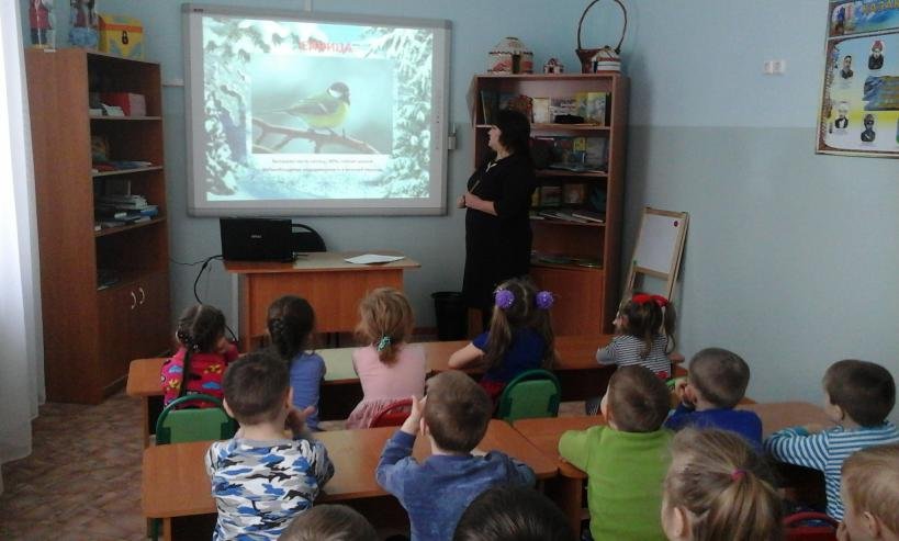 2018  жылдың 26 ақпанында ересектер  тобында «Құстарға көмек» атты әңгімелеу  жүргізілді. Балалар әңгімеге белсене қатысып сұрақтар қойып, жұмбақтарға жауап берді. Сурет бойынша әңгіме құрап жылы жаққа ұшатын құстар мен қыстайтын құстарды атады. Серуен кезінде балалар құстарға жем және нан қалдықтарын арнайы құсқа жасалған тақтайшаларына салды. Балалар қыста құстарға адамдардың көмегінсіз қиын екендігін түсінді.