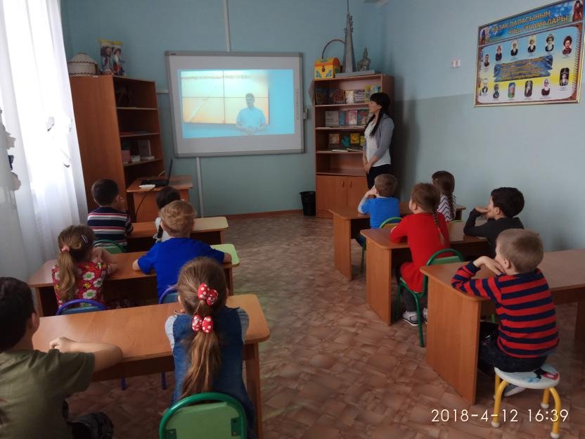 жағдайда өздерің қалай ұстау керек екені жайлы видеофильм көрсетті.Тәрбиешілер балалармен су тасқыны болған кезде қандай жағдай болуы мүмкін және одан қалай шығу керектігін талқылады.